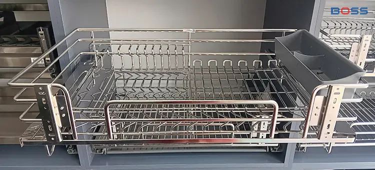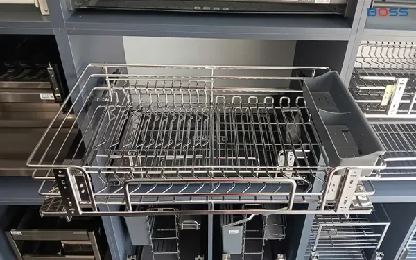 Giá bát đĩa dự trữ ray âm giảm chấn inox 304 boss chuyển động nhẹ nhàng, êm ái